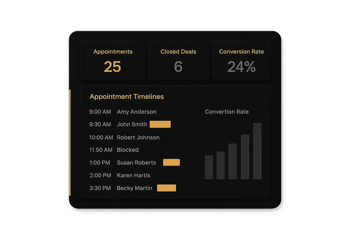 You get a dedicated CRM where every lead, reply, and booked call is tracked in real time.